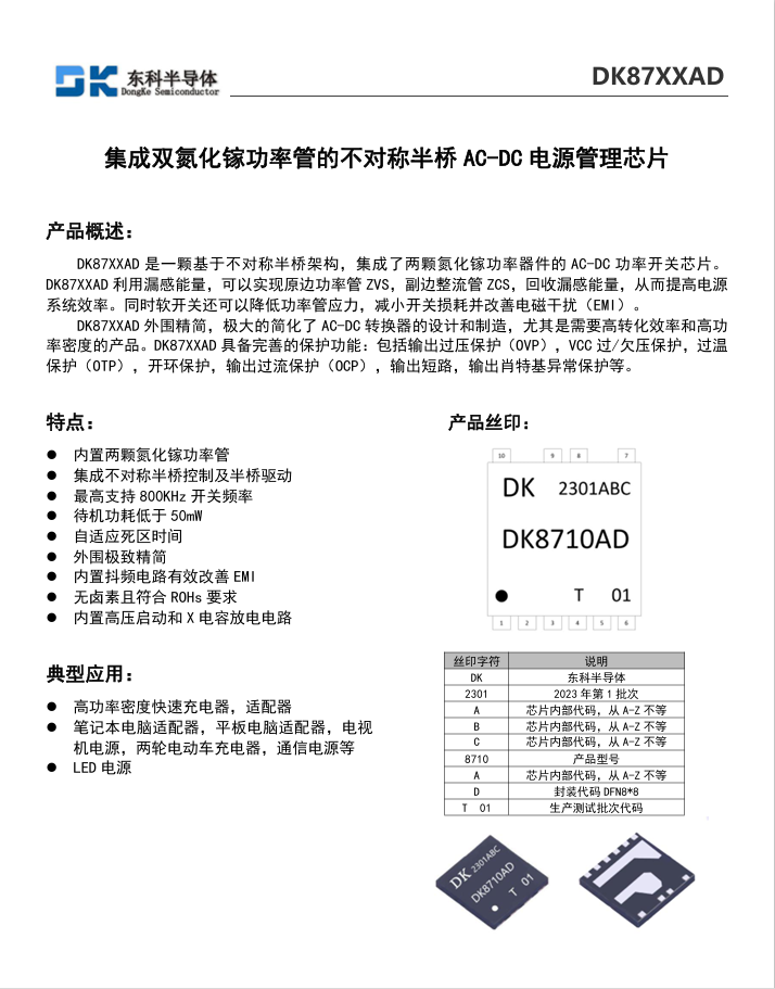東科半導(dǎo)體(安徽)股份有限公司是國內(nèi)為數(shù)不多的集研發(fā)、設(shè)計(jì)、生產(chǎn)、銷售為一體的集成電路科技創(chuàng)新型企業(yè),是國家級(jí)專精特新小巨人企業(yè),2022年榮獲安徽省專精特新50強(qiáng)企業(yè)。公司分別在青島、北京、無錫、馬鞍山、深圳設(shè)立有5個(gè)研發(fā)中心,一個(gè)封測(cè)基地。公司采用市場少有的“Fabless+封測(cè)”的經(jīng)營模式,在具備自主芯片設(shè)計(jì)能力的同時(shí),擁有自主封測(cè)能力。公司產(chǎn)品主要方向是高性能模擬和數(shù)模混合類電源管理芯片,第三代化合物半導(dǎo)體電源管理芯片和其他模擬類芯片。
